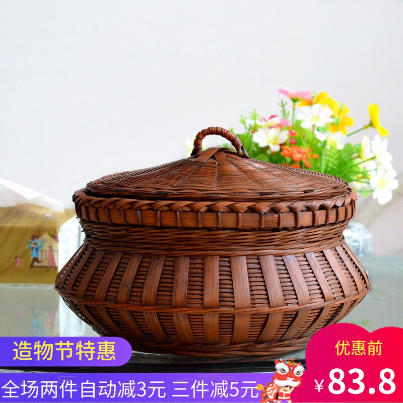 复古天坛竹手工竹编收纳竹制品A小收纳篮茶具装饰摆件竹篮广西热门设计联盟服务商
